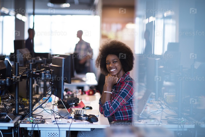 Счастливая девушка в офисе