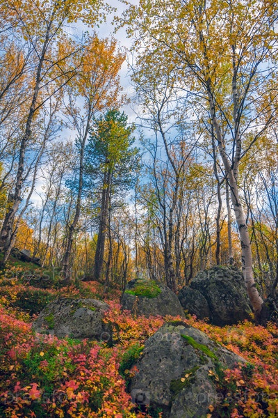 Деревья среди камней в осеннем лесу