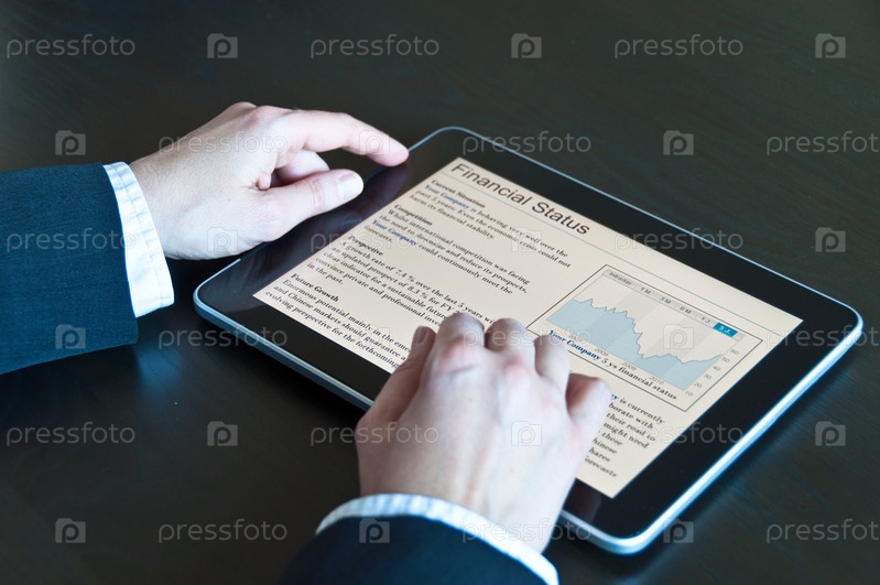 Современный планшетный компьютер, отображающий биржевые диаграммы
