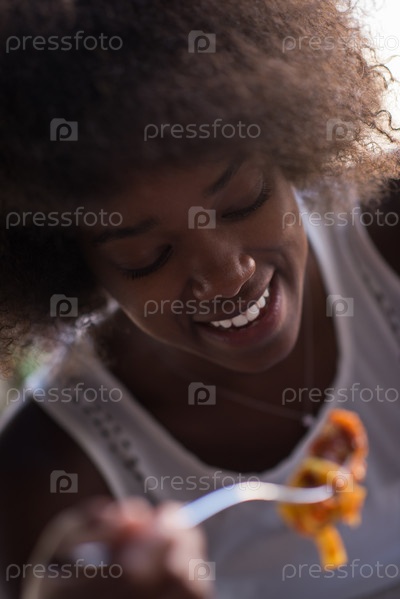 Девушка кушает макароны