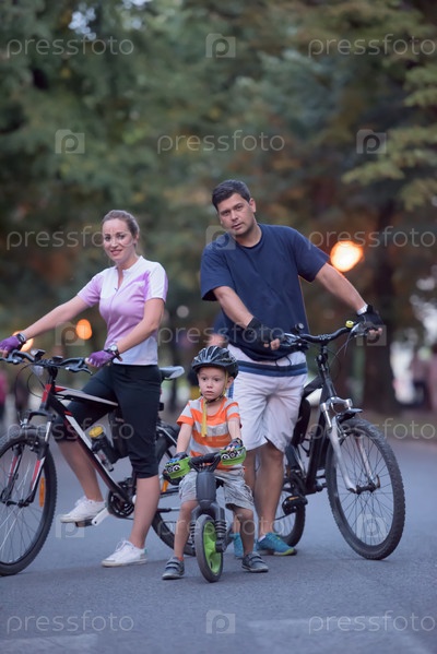 Молодая семья с велосипедами