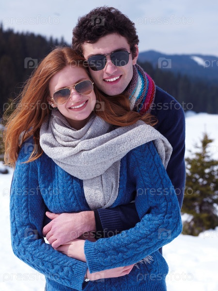 Счастливая пара на зимних каникулах