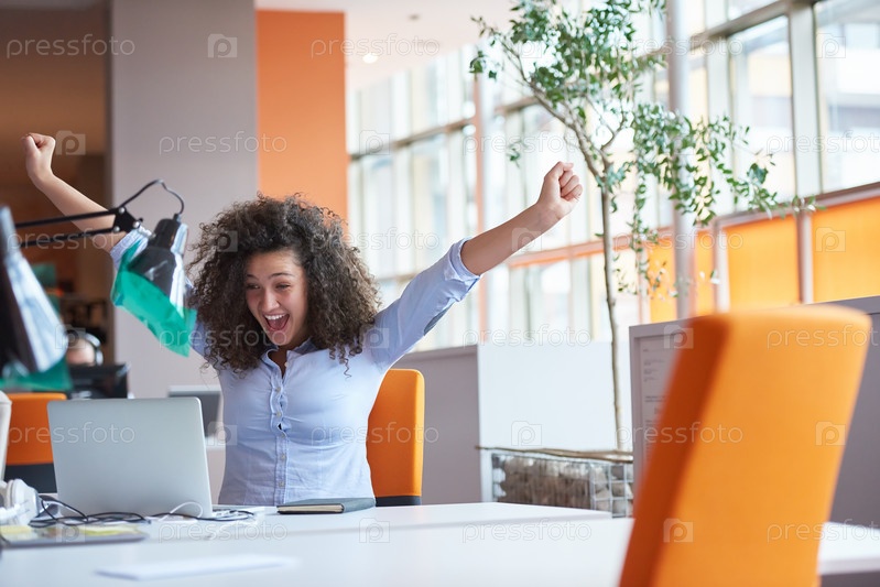 Счастливая девушка в офисе