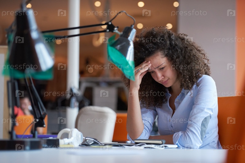 Грустная девушка в офисе
