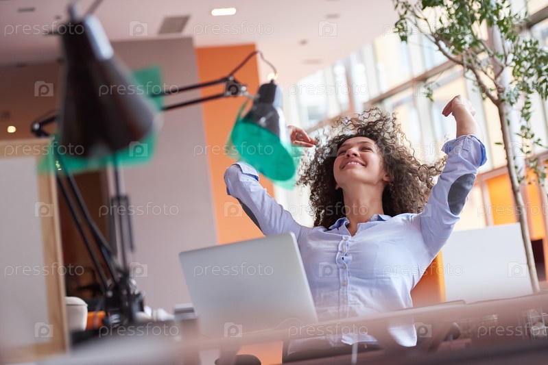 Счастливая девушка в офисе