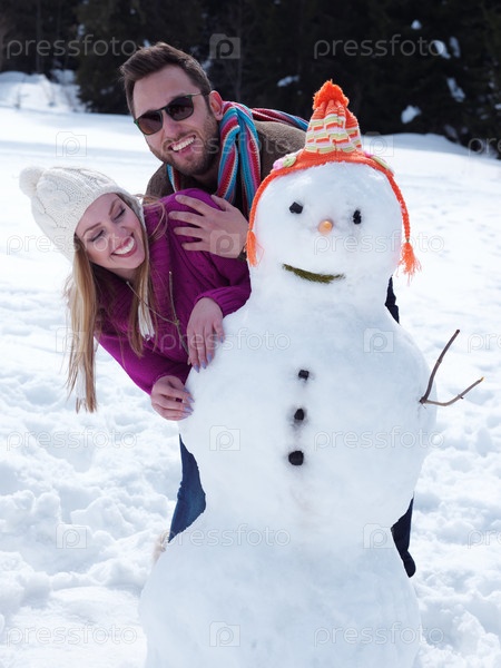 Пара со снеговиком