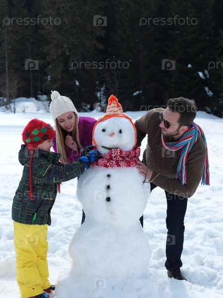 Семья со снеговиком