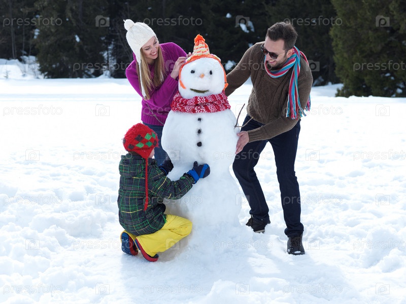 Семья и снеговик