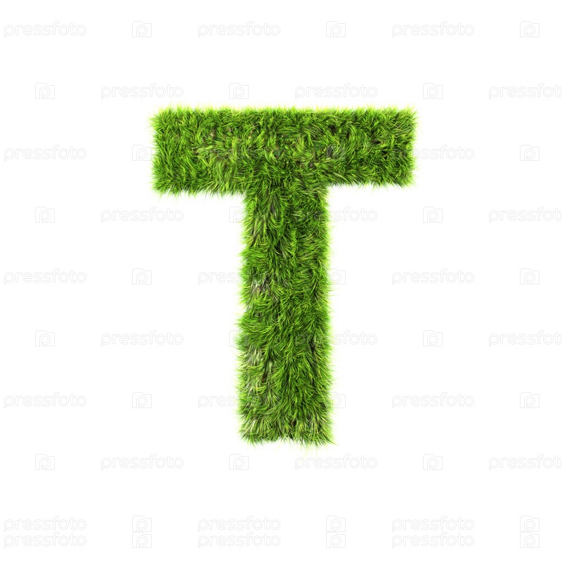 Буква английского алфавита из зеленой травы на белом фоне