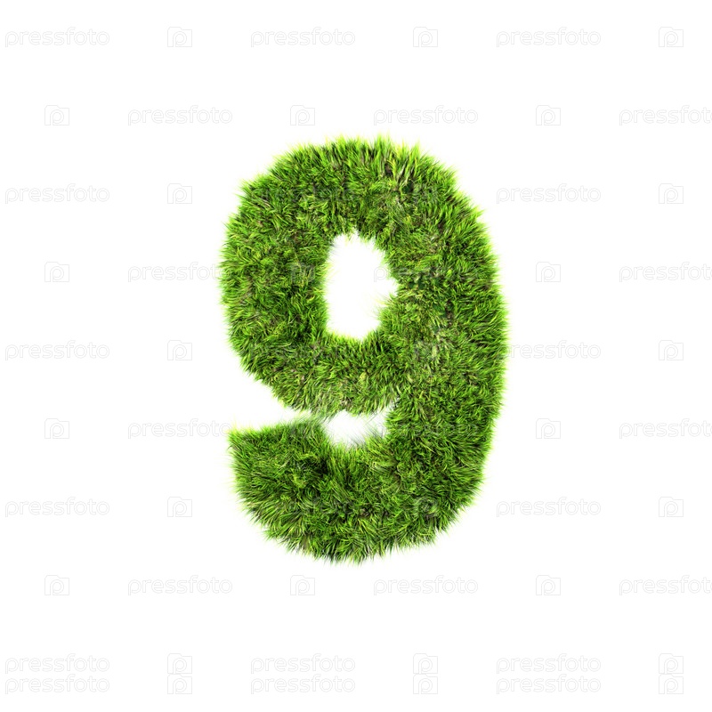 Цифра 9 из зеленой травы на белом фоне