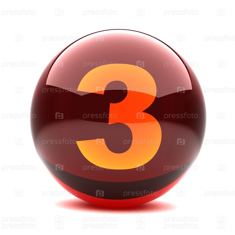 Глянцевый шар с оранжевой цифрой 3