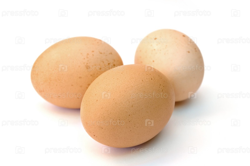 Три яйца на белом фоне