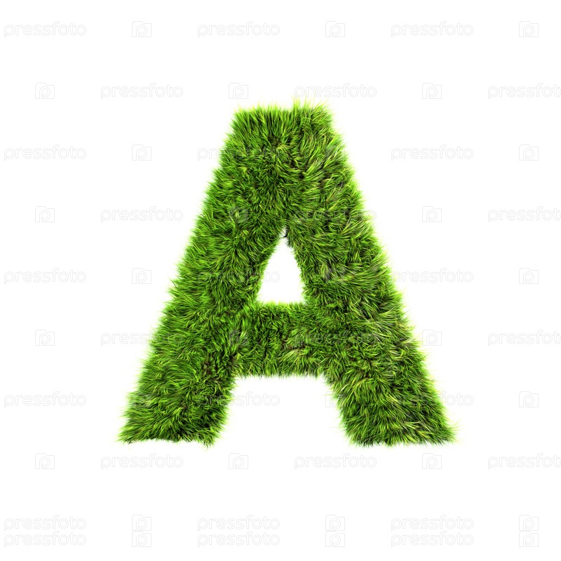 Буква А из зеленой травы на белом фоне