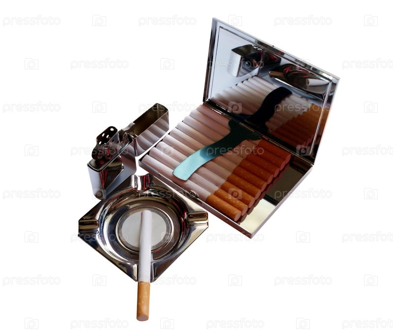 Сигареты, зажигалка и пепельница
