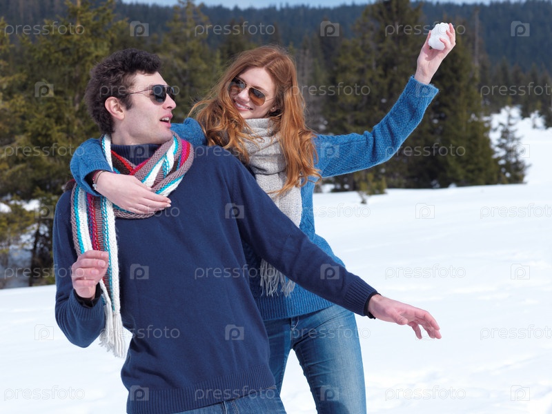 Пара играет в снежки