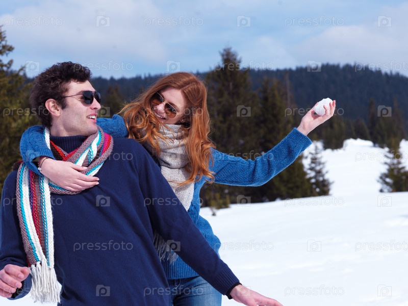 Пара играет в снежки