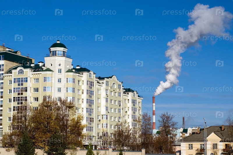 Дом в жилом районе и дым из трубы