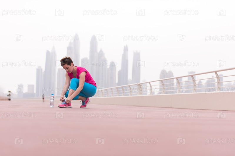 Девушка завязывает шнурки