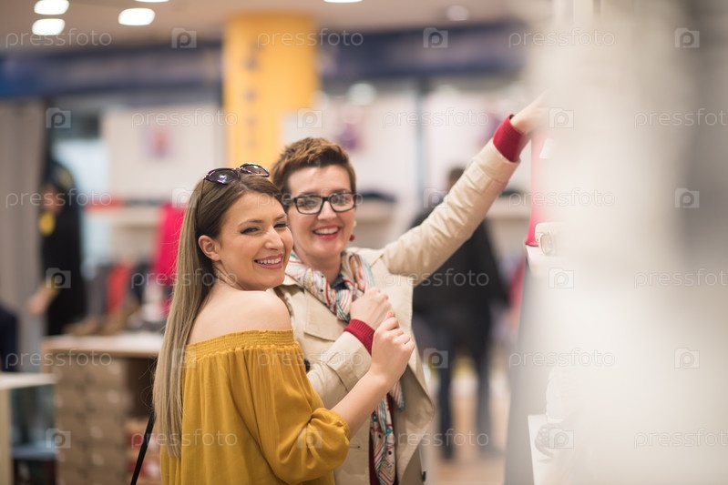 Подруги в большом торговом центре