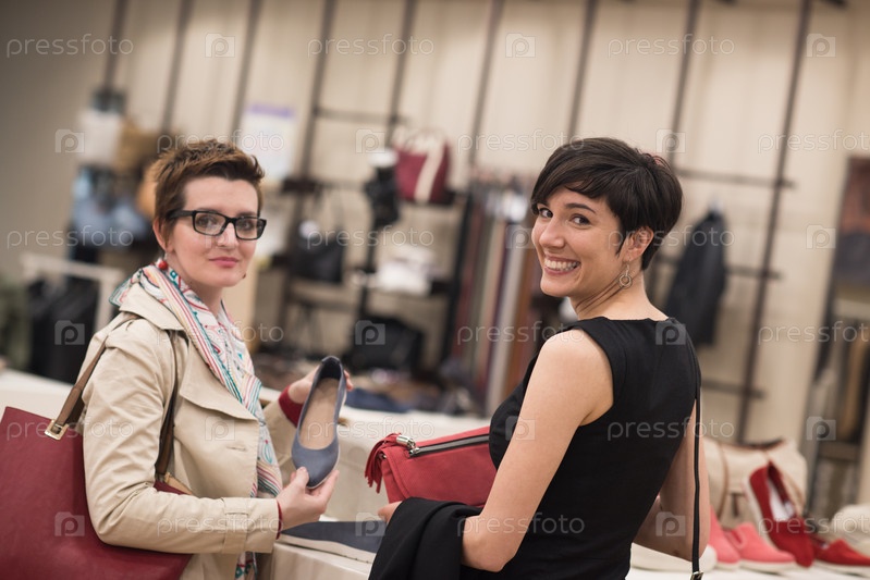 Подруги в большом торговом центре