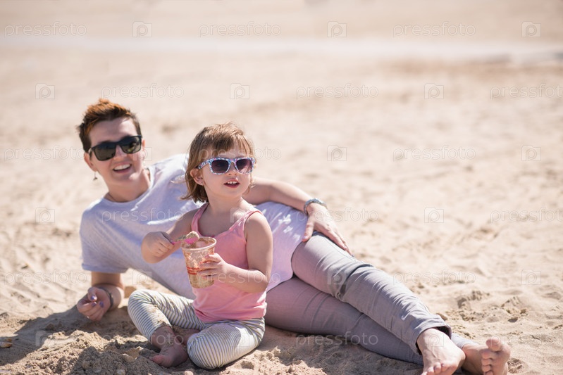 Мама и дочь на пляже