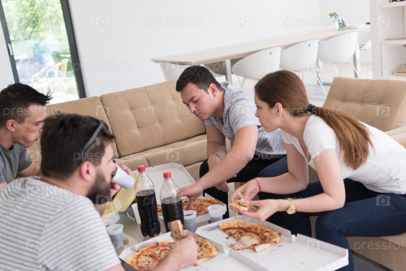 Друзья кушают пиццу