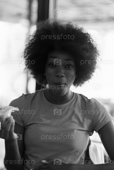 Девушка кушает пиццу