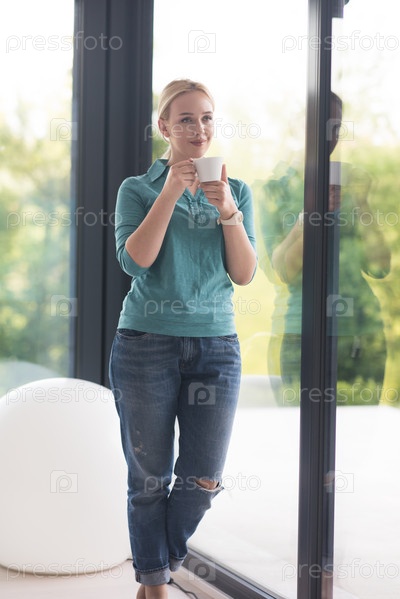 Девушка пьет кофе