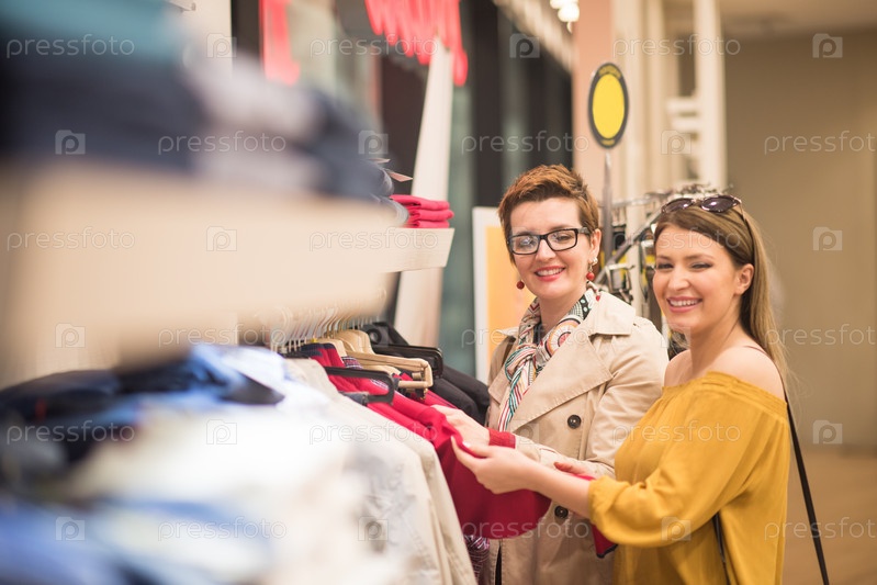 Подруги в большом торговом центре