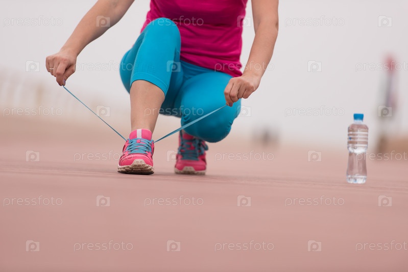 Девушка завязывает шнурки