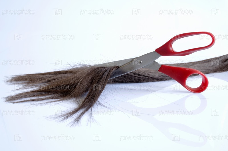 Волосы с красными ножницами