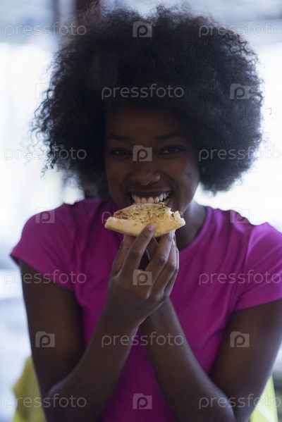 Девушка кушает пиццу