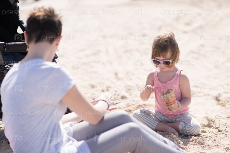 Мать и дочь на пляже