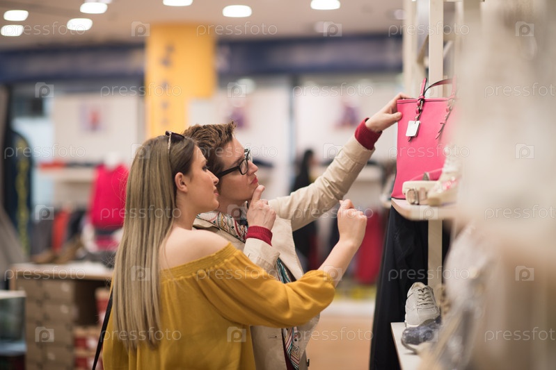 Подруги в большом торговом центре