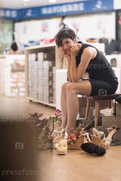 Женщина в обувном магазине