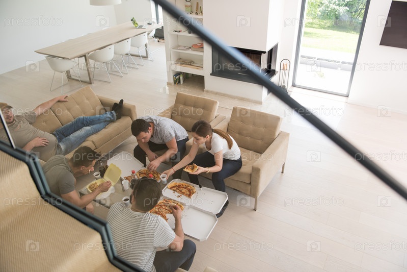 Друзья кушают пиццу