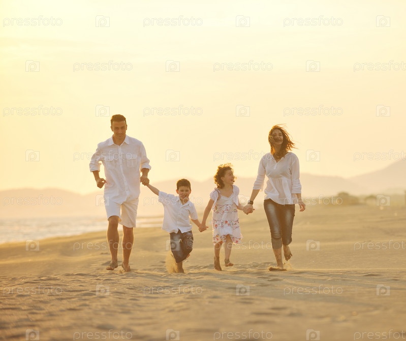 Счастливая семья на пляже