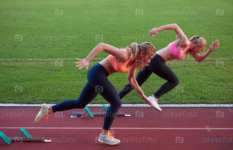 Спортсменки бегут