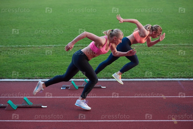 Спортсменки бегут