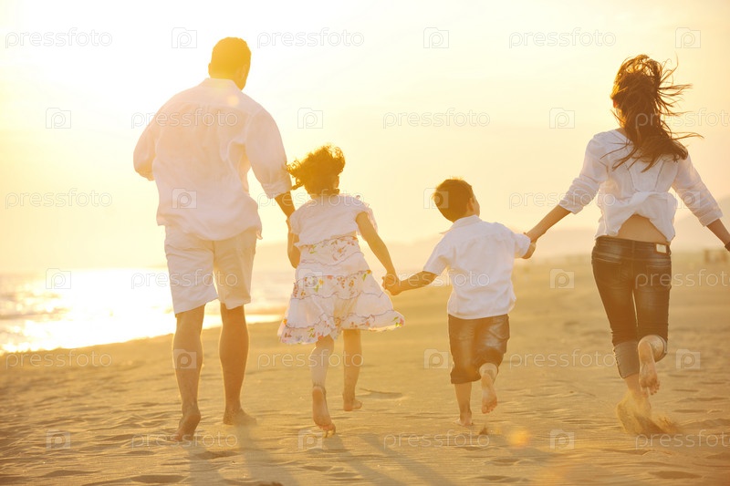 Счастливая семья на пляже