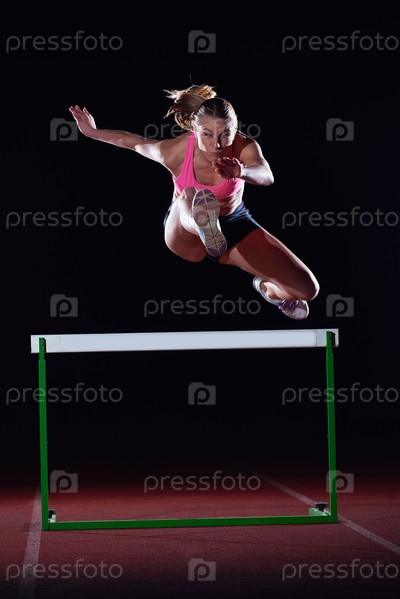 Спортсменка прыгает через препятствие