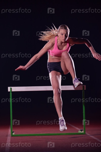Спортсменка прыгает через препятствие