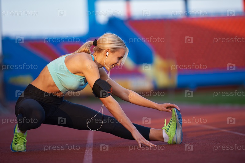 Спортсменка растягивается на стадионе