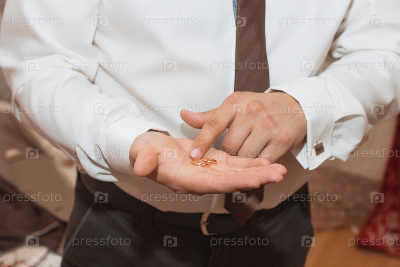Обручальные кольца на ладони жениха