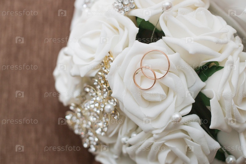 Красивый свадебный букет и кольца