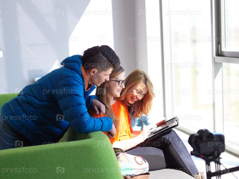 Студенты работают над школьным проектом вместе