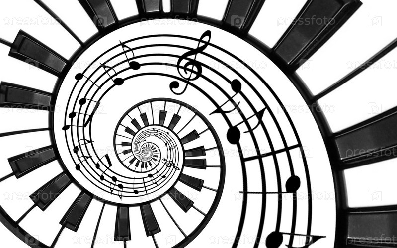 Клавиши пианино, закрученные в спираль