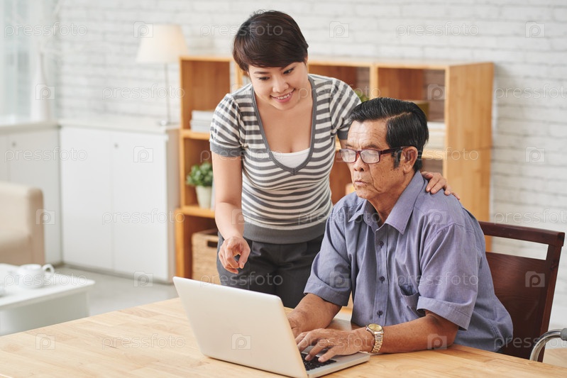 Дедушка за ноутбуком