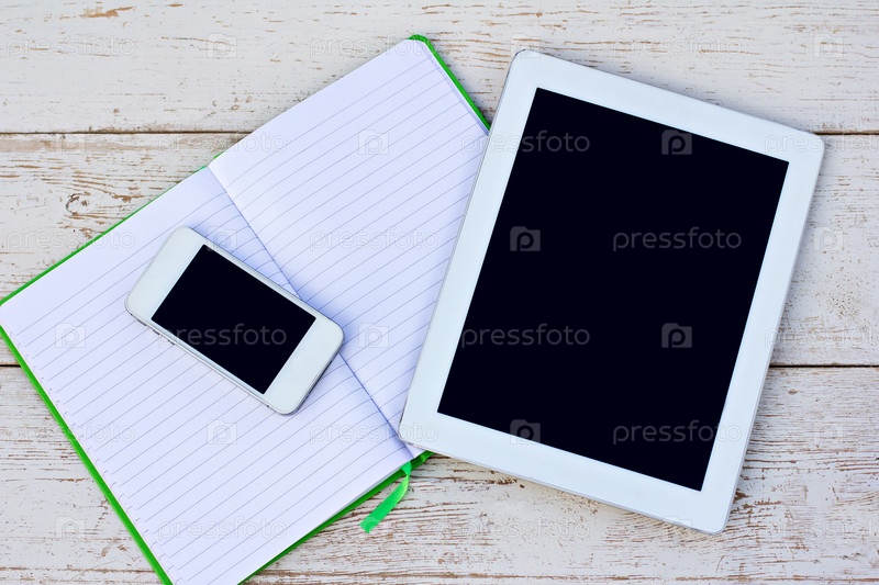 Смартфон, ежедневник и планшет
