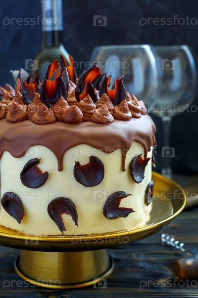 Торт украшен молочным и темным шоколадом